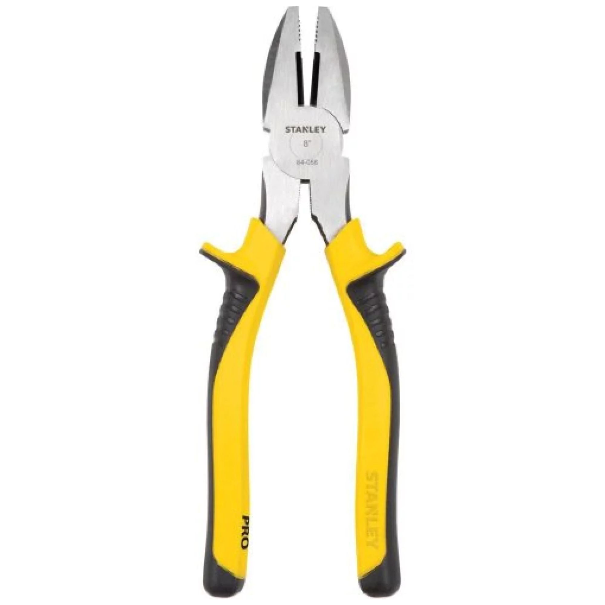 Alicate electricista Stanley 8 pulgadas, herramienta profesional para trabajos eléctricos. Fabricado en acero al carbono forjado con mangos ergonómicos antideslizantes. Ideal para cortar, doblar y sujetar cables con precisión. Cumple normas de seguridad eléctrica y garantiza durabilidad excepcional.