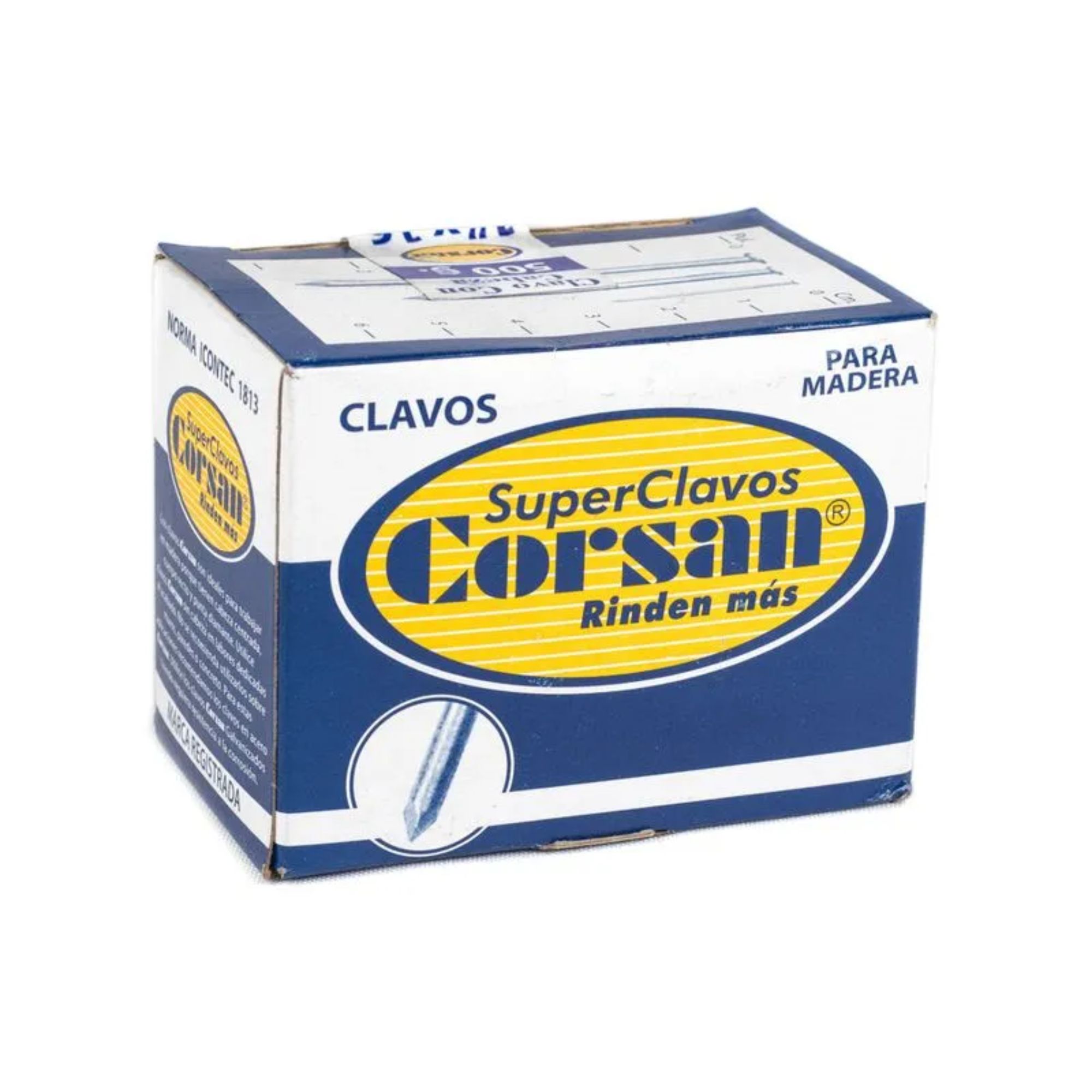 Clavo común con cabeza 5×5 CORSAN para trabajos de construcción y carpintería. Fabricado en acero de alta resistencia, ideal para fijaciones estructurales y ensamblajes en madera. Excelente relación calidad-precio en ferretería industrial.