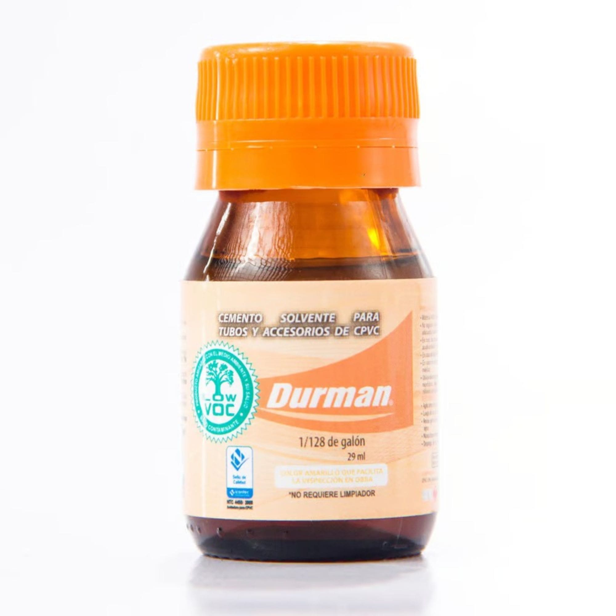 Soldadura CPVC 1/128 (30 cc) Durman – Cemento especializado para uniones permanentes en tuberías y conexiones CPVC. Ofrece máxima resistencia a la corrosión y temperaturas elevadas. Ideal para sistemas de agua caliente, industriales y residenciales. Fácil aplicación y secado rápido garantizado.