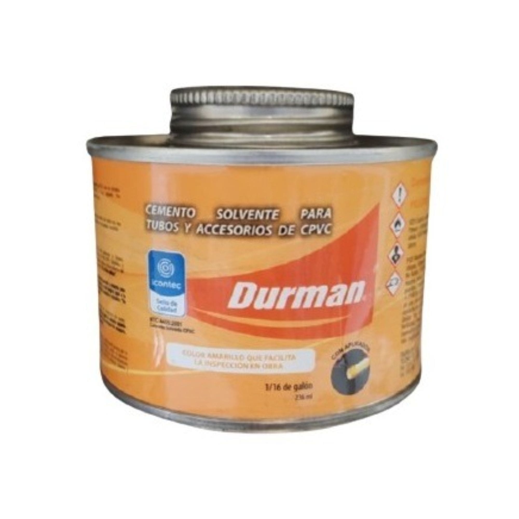 Soldadura CPVC 1/16 (236 cc) Durman – Cemento especializado para uniones de tuberías CPVC en sistemas de agua caliente y fría. Ofrece máxima resistencia y durabilidad en instalaciones hidráulicas. Producto de alta calidad para profesionales de la construcción y fontanería.