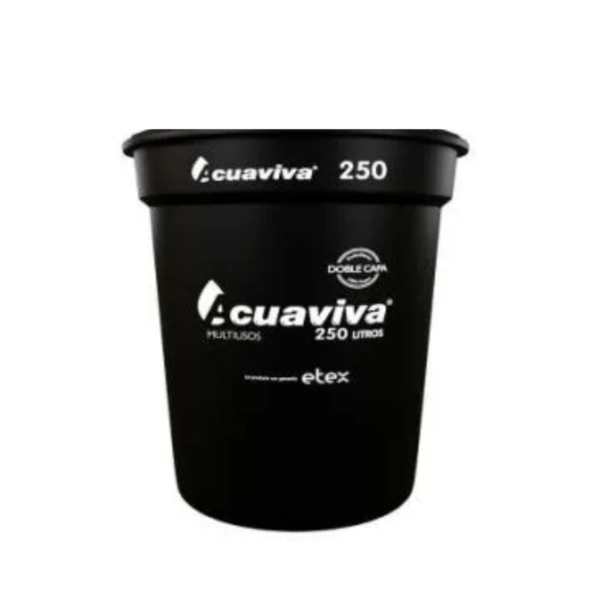 Tanque Acuaviva negro 250 litros sin tapa, ideal para almacenamiento de agua y líquidos. Fabricado en polietileno de alta densidad, resistente a impactos y condiciones climáticas. Perfecto para uso residencial, agrícola e industrial. Capacidad: 250 litros.